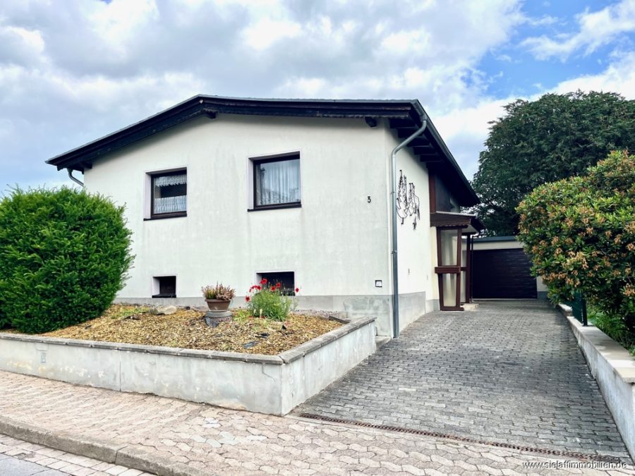 Das massiv gebaute Einfamilienhaus mit seinen gedämmten Außenwänden aus dem Baujahr 1968 macht mit seinem pflegeleichten Garten einen gemütlichen Eindruck. Die Straße liegt in einem ruhigen Wohnviertel.