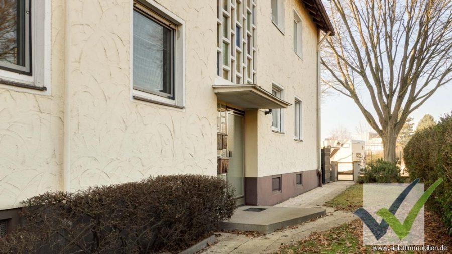 In einem soliden Fünf-Familien-Wohnhaus aus dem Baujahr 1966 befindet sich diese helle und freundliche Zwei-/Drei-Zimmer-Eigentumswohnung mit Küche und Bad im 1. Obergeschoß.